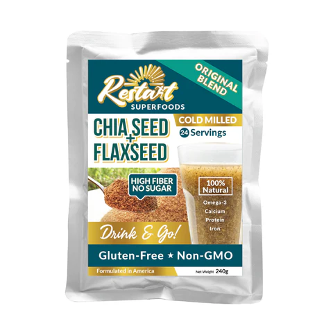 The results are AMAZING. The omega-3 oils and nutrients stay much FRESHER and it is much EASIER for your body to absorb! Restart is a propriety blend of the highest grade chia seeds and flaxseed COLD-MILLED to perfection.